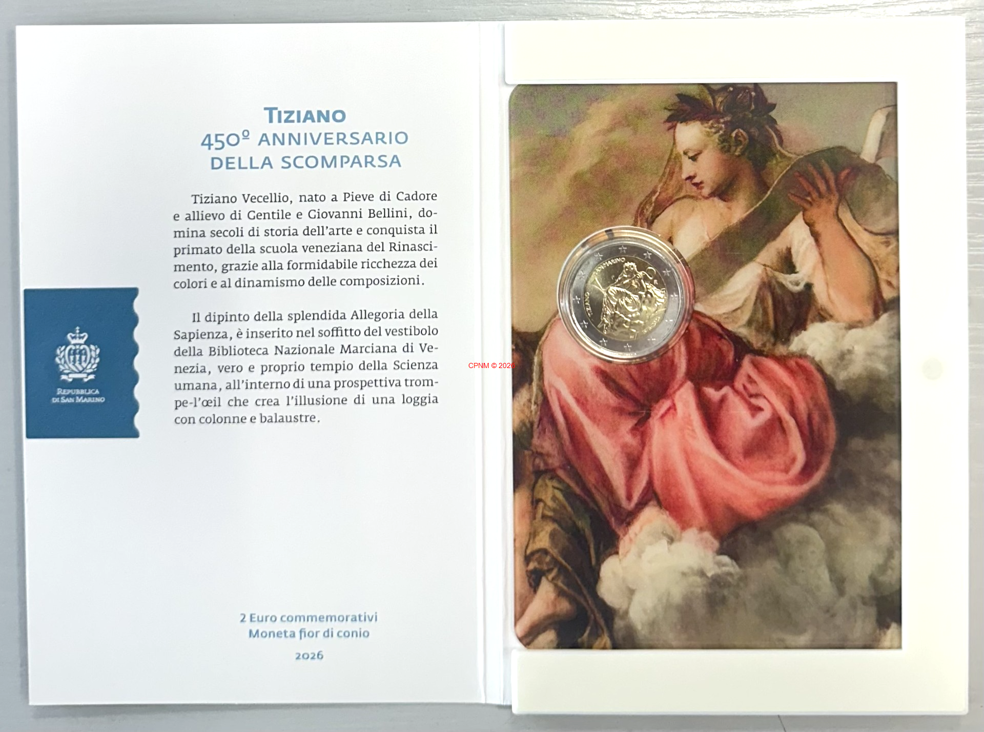 SAINT-MARIN, 2 € commémorative 2026 "TIZIANO", frappe Belle Epreuve en POLISSAGE INVERSE. ...