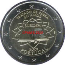 PORTUGAL, pièce de 2 euros commémorative du TRAITE de ROME. La 2ème pièce la plus rare de la série, SEULEMENT 1000 000 d'exemplaires frappés.