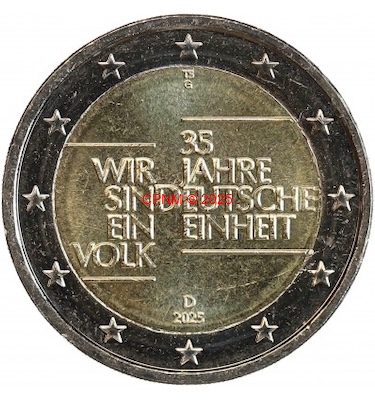 ALLEMAGNE, 2 € commémorative 2025 "SARRE", étui BU des 5 ateliers (A, D, F, G et J).