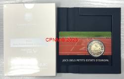 ANDORRE, 2 € commémorative 2025 "Jeux des Petits états d'Europe", frappe BE (Belle Epreuve), dans sa coin card numérotée et son boitier protecteur.