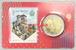 SAINT-MARIN, 2 € courante 2019 en coin card incluant également un timbre-poste de collection ("stamp coin card").