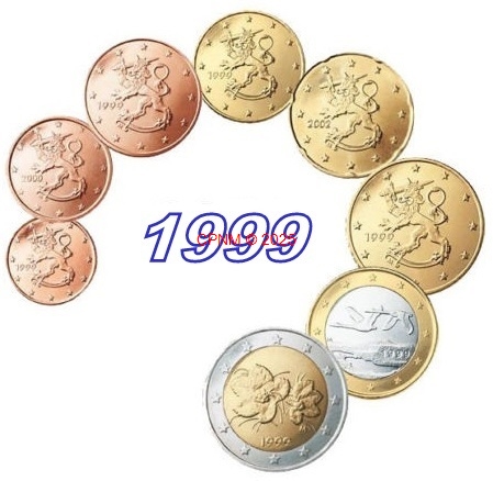 FINLANDE, Série complète des 8 Euros, millésimée "1999".