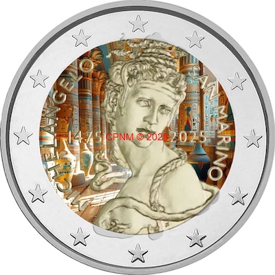 SAINT-MARIN, 2 € commémorative 2025 "550e anniversaire de la naissance de Michel-Ange" (li...