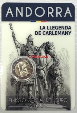 ANDORRE, 2 € commémorative 2022 "La légende de Charlemeagne", en étui BU (tirage 70.000 exemplaires).