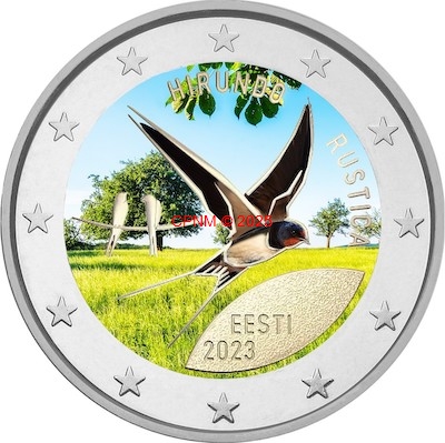 ESTONIE, 2 € commémorative 2023 "Hirondelle" COLORISEE, type II (livrée sous capsule).