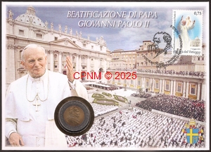 VATICAN, enveloppe philatélico numismatique réalisée en l'honneur de la béatification du P...