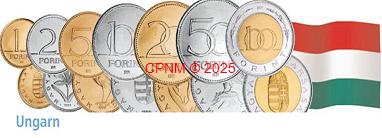 HONGRIE, série des dernières monnaies avant l'Euro (Florin), 7 pièces différentes.