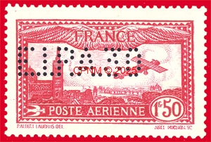 1,50 F rouge, "Avion survolant Marseille", perforé "EIPA 30". Très bel ex. de ce timbre tr...