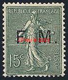 15 c vert-gris, type "Semeuse" lignée, surchargé "FM", très jolie pièce, peu commune !