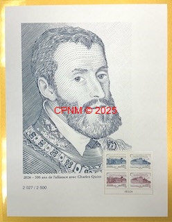 Superbe et RARE bloc Monacophil 2024-Charles Quint, dans son encart d'origine. Très petit...