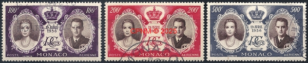 MONACO, PA n° 63/65, Mariage Princier, 3 val., oblitérées et TB.