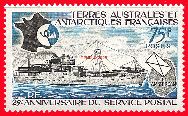 75 F violet-noir, bleu et noir, "25e anniversaire du service postal".