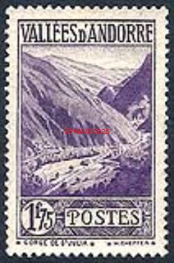 ANDORRE, 1,75 F violet "Gorges de Saint-Julia", TB ** Cote : 266 €